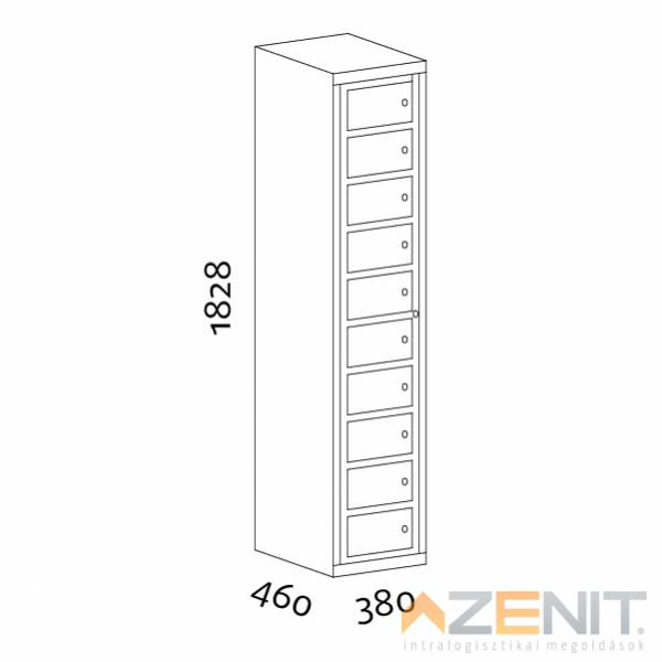 Kiadószekrény mosodai 1 oszlopos 10 rekeszes 5010 típus 1828x380x460 mm RAL 1015 krém