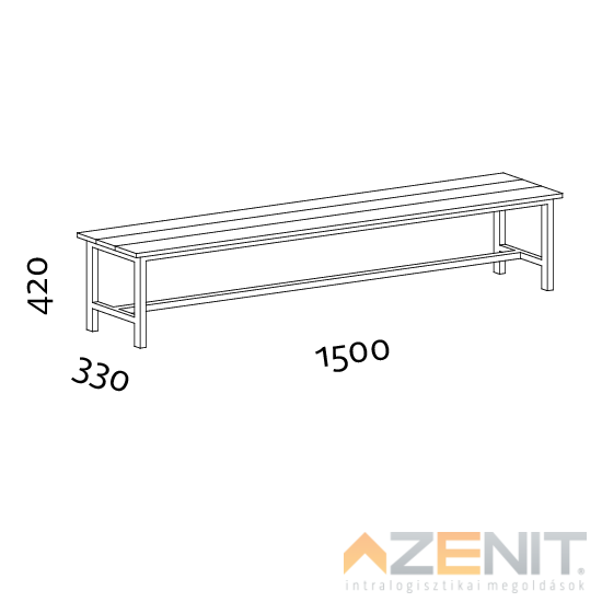 Öltözőpad lécezett 1500 mm hosszú 420x330 mm RAL 1015 krém