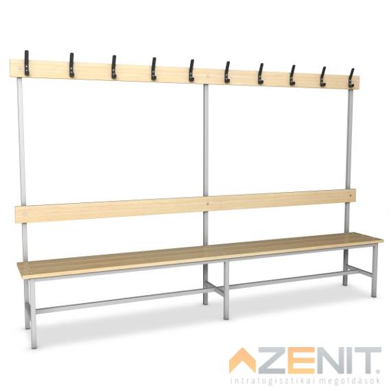 Öltözőpad lécezett háttámlás kétoldalas 2500 mm teljes magasságxmélység 1640x690 mm...