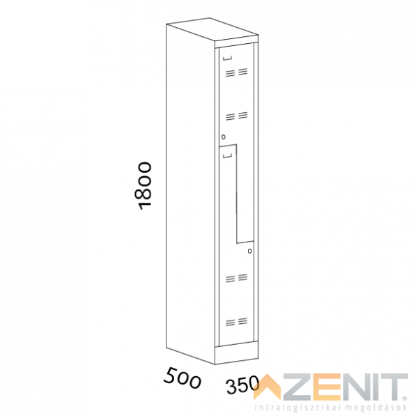 Öltözőszekrény fém KS "Z" 2 ajtós 5350/2 típus 1800x350x500 mm RAL 7035 szürke