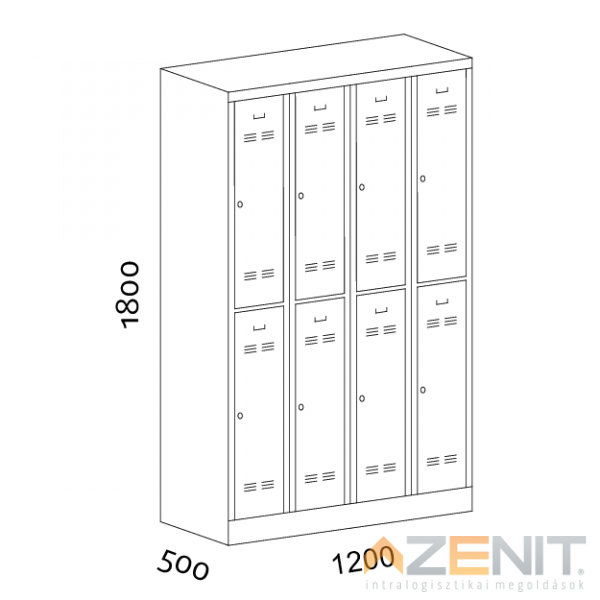 Öltözőszekrény fém osztott 8 ajtós KS5004/8 típus 1800x1200x500 mm RAL 1015 krém